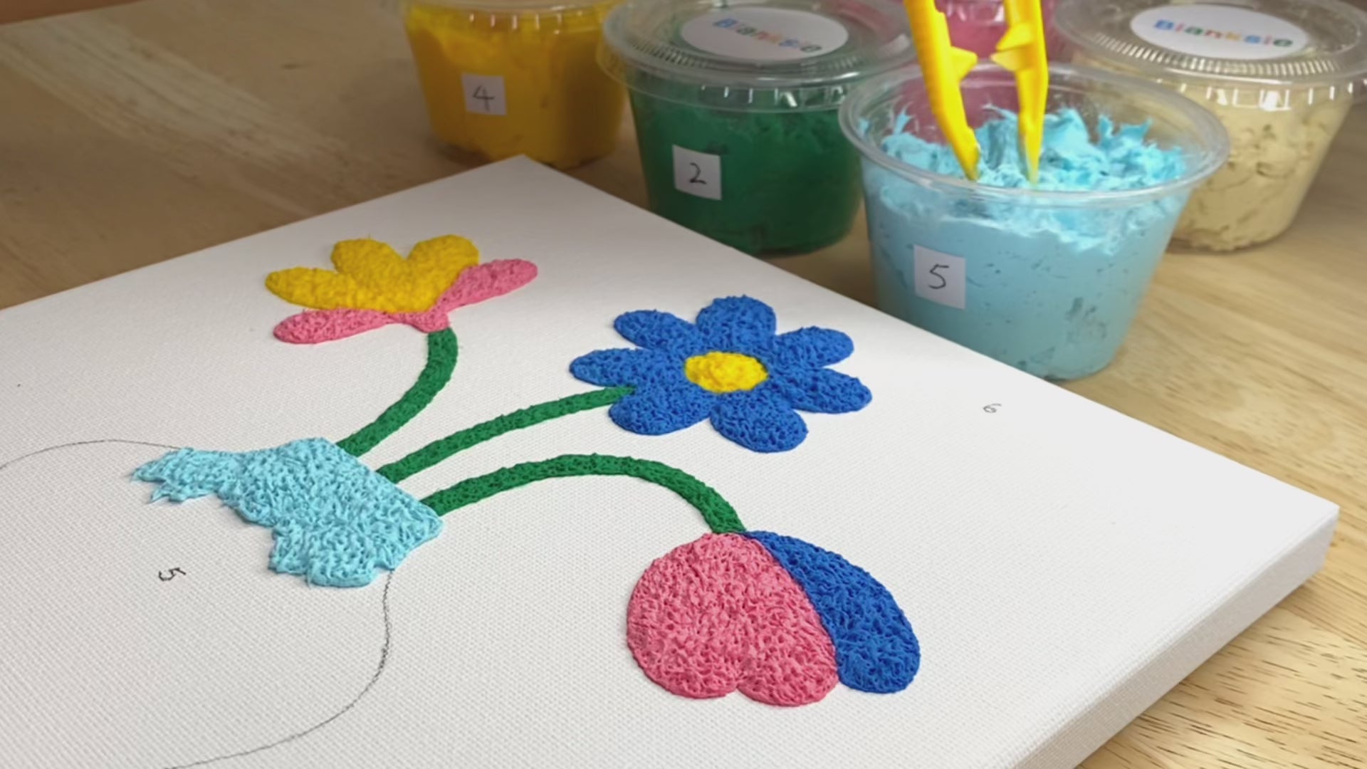 Each of our kits includes a canvas, a set of 6 Paper-paste™ colors, a sculpting stick, and tweezers.